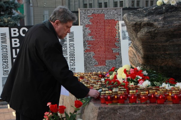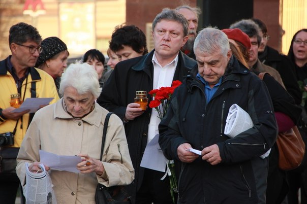 Основатель партии «ЯБЛОКО» Григорий Явлинский принял участие в акции «Возвращение имен», которая ежегодно проходит в сквере у Соловецкого камня в канун Дня памяти жертв политических репрессий.