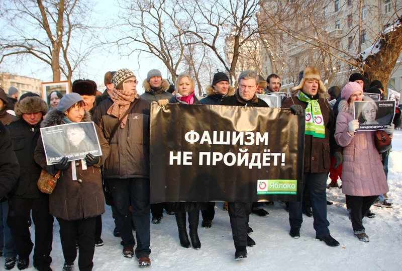 Grigory Yavlinsky, YABLOKO founder and member of its Political Committee, led YABLOKO’s column at the anti-fascist manifestation in Moscow. The action was held in memory of lawyer Stanislav Markelov and journalist Anastasia Baburova killed by Neo-Nazis in the centre of Moscow.