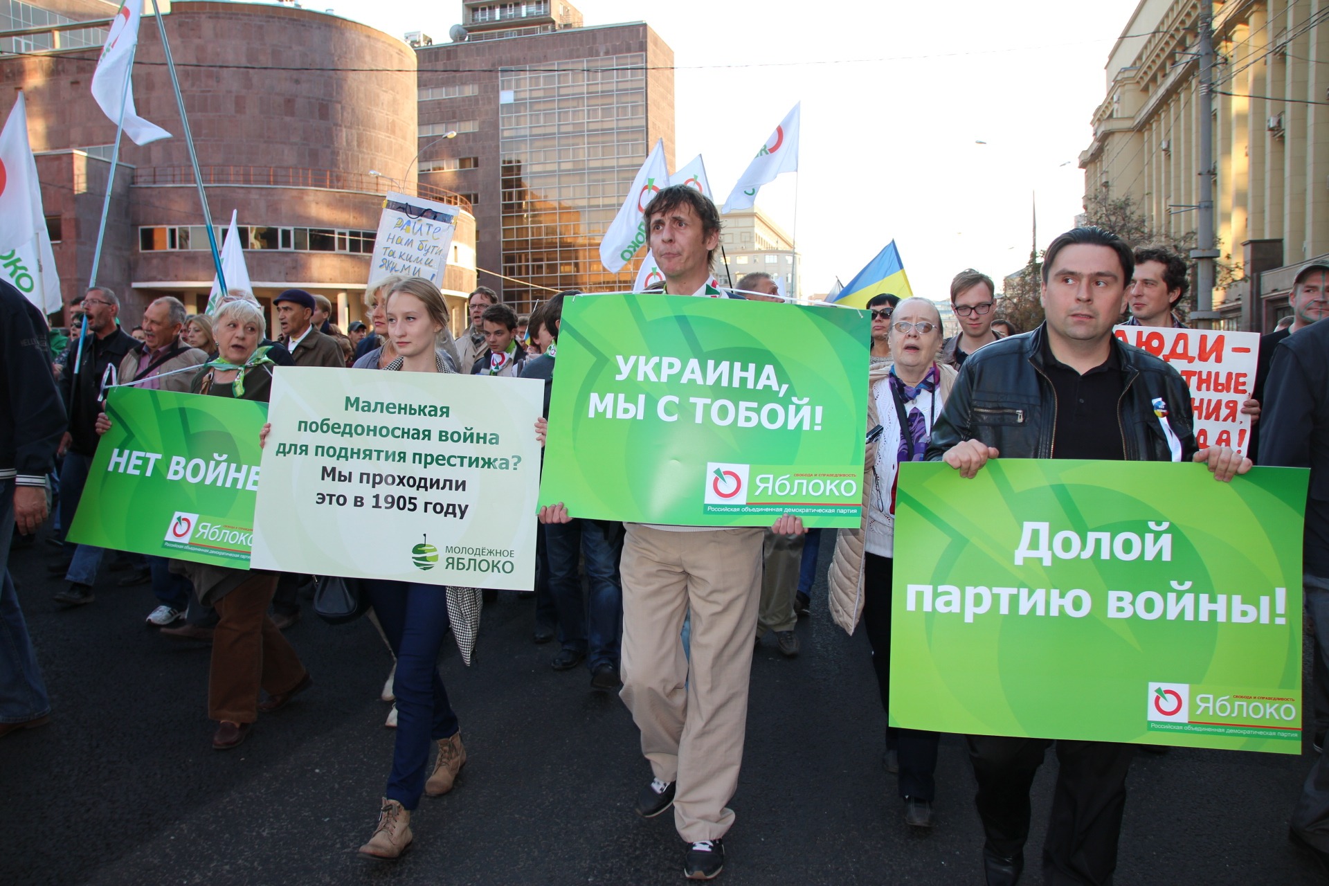 Перед началом шествия по личному распоряжению высокопоставленного сотрудника московской мэрии полиция изъяла пятиметровую растяжку с лозунгом «Война в Украине – позор Кремля», которую предполагалось нести во главе колонны «ЯБЛОКА».