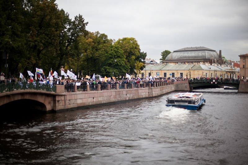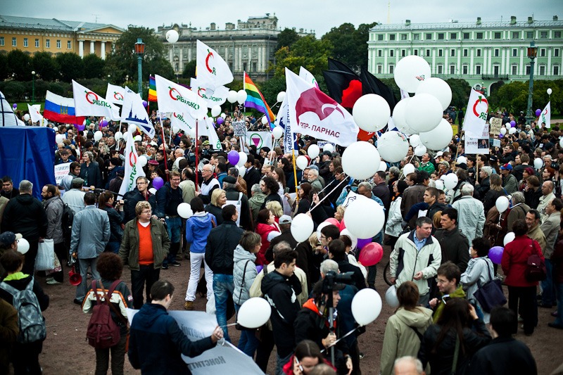 «Демократический марш» стал самой массовой акцией из тех, которые проходили сегодня в рамках «Марша миллионов» в Санкт-Петербурге. В нем приняло участие более 4 тысяч человек. Основатель партии «ЯБЛОКО» Григорий Явлинский считает, что только протест, объединяющий людей на основе реальных ценностей, имеет политический смысл, что и было продемонстрировано.