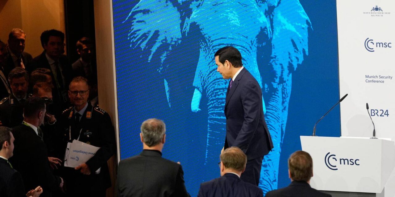 US Secretary of State Marco Rubio leaves after speaking at the conference on 14 February 2026 // Photo by Alex Brandon / POOL / AFP via Getty Images